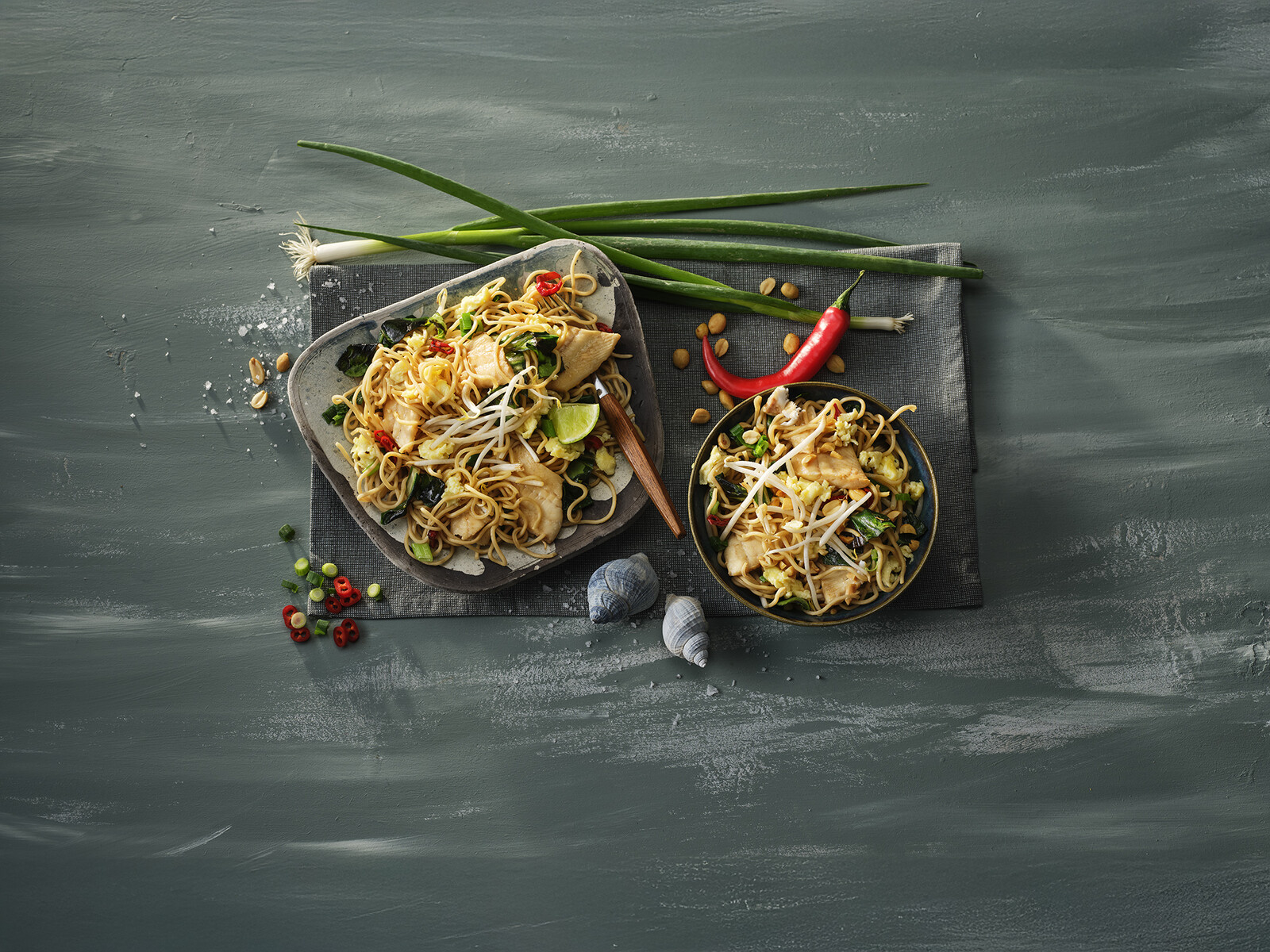 Het is ook heel erg lekker om pad thai te maken met (grote) garnalen of een andere visfilet zoals schelvis, heek of wijting.